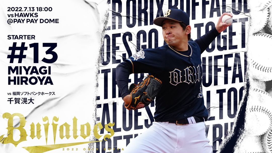 #7月13日 #福岡ソフトバンク戦 #予告先発投手 #宮城大弥 #福岡PayPayドーム #18時00分試合開始 #Bs2022 #buffaloes #baseball #ORIX #プロ野球 18時00分試合開始7月13日baseballBs2022buffaloesNPB Pacific LeagueOfficial MediaORIXORIX BuffaloesORIX Buffaloes Official Mediaオリックス・バファローズプロ野球予告先発投手宮城大弥福岡paypayドーム福岡ソフトバンク戦 NPBHUB.COM | The Fanbase of Nippon Baseball & Nippon Professional Baseball