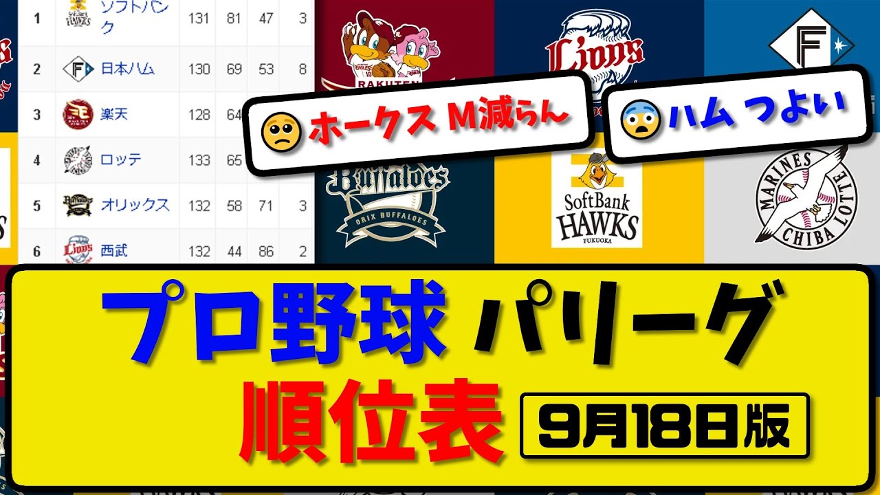 【最新】プロ野球パ・リーグ順位表 9月18日版|楽天8-1ロッテ|西武3-1オリ|ソフ0-3ハム|【まとめ・反応集・なんJ・2ch】 #順位表 #オリックスバファローズ #福岡ソフトバンクホークス #千葉ロッテマリーンズ #日本ハムファイターズ #東北楽天ゴールデンイーグルス #西武ライオンズ #プロ野球 #反応集 Tohoku Rakuten Golden Eagles東北楽天ゴールデンイーグルス NPBHUB.COM | The Fanbase of Nippon Baseball & Nippon Professional Baseball