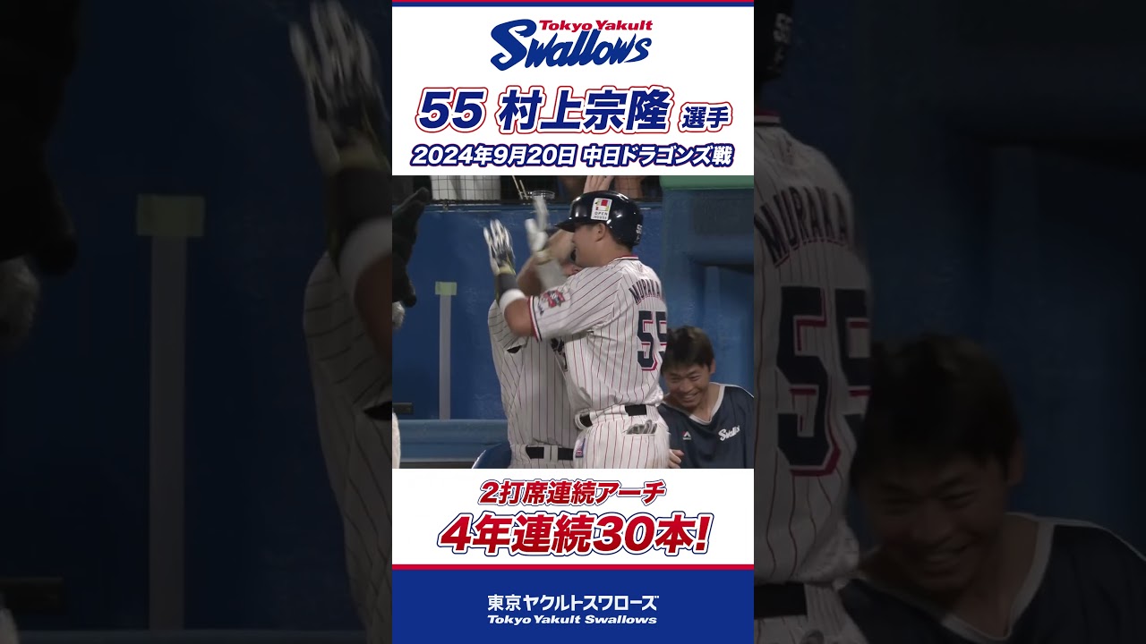 2打席連続アーチで4年連続30本塁打を記録!村上宗隆選手 #swallows #shorts #swallows #ヤクルト #東京ヤクルトスワローズ
