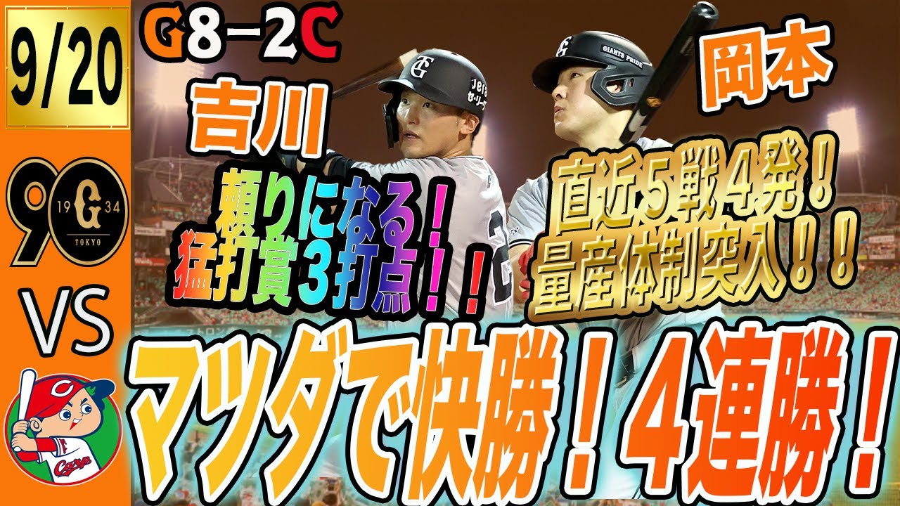巨人はマツダで広島に快勝し4連勝でマジック6!吉川・岡本猛打賞で優勝に向けて大きな勝利! 読売ジャイアンツ