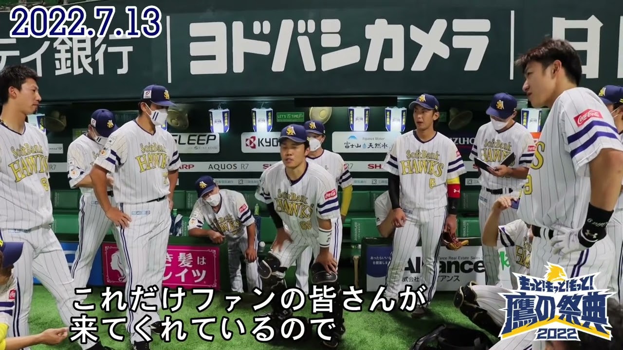 7月13日の試合前円陣です。声出しは海野隆司選手! ホークスTVに登録すると1軍の中継も見られます! ホークスTVは初月無料! https://tv.softbankhawks.co.jp/ Fukuoka SoftBank HawksFukuoka SoftBank Hawks Official ChannelFukuoka SoftBank Hawks Official VideoOfficial ChannelOfficial VideoPACIFIC LEAGUE福岡ソフトバンクホークス NPBHUB.COM | The Fanbase of Nippon Baseball & Nippon Professional Baseball