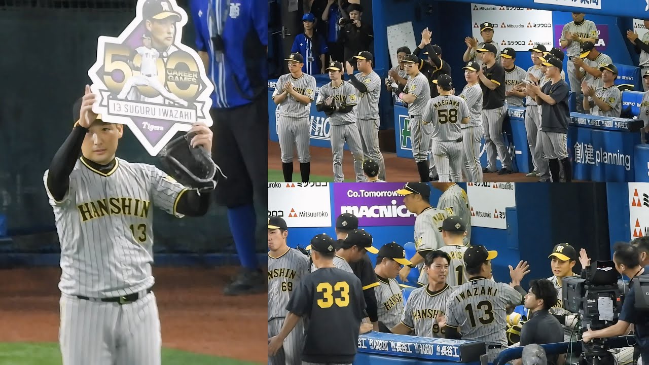 【阪神ベンチ全員で拍手】岩崎優、プロ11年目で500試合登板を達成!佐藤輝明の決勝弾で記録に華を添える白星 2024.9.21