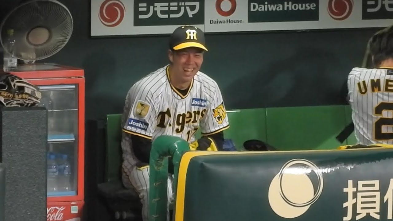 【投球に手応え!?】青柳スマイル全開!投球後ベンチ戻って笑いまくる青柳晃洋 2024.9.10