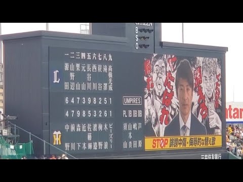 20240608 くたばれ禁止!阪神タイガースOB能見篤史さんが出演する誹謗中傷・侮辱的な替え歌禁止を呼び掛けるCM ノウミサン@阪神甲子園球場・レフト外野 日本生命セ・パ交流戦 #能見篤史 #ノウミサン #阪神タイガース #阪神 #タイガース #hanshintigers #hanshin #tigers #阪神甲子園球場 #甲子園球場 #甲子園 ORIX Buffaloesオリックス・バファローズ能見篤史 NPBHUB.COM | The Fanbase of Nippon Baseball & Nippon Professional Baseball