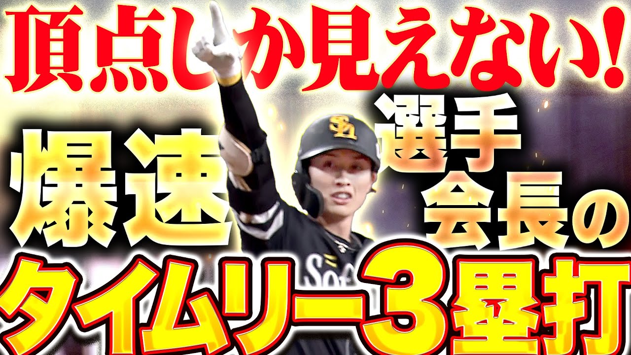 【頂点へ駆け上がる】周東佑京『初球を仕留めた爆速選手会長!タイムリー3塁打で勝ち越しに成功!』