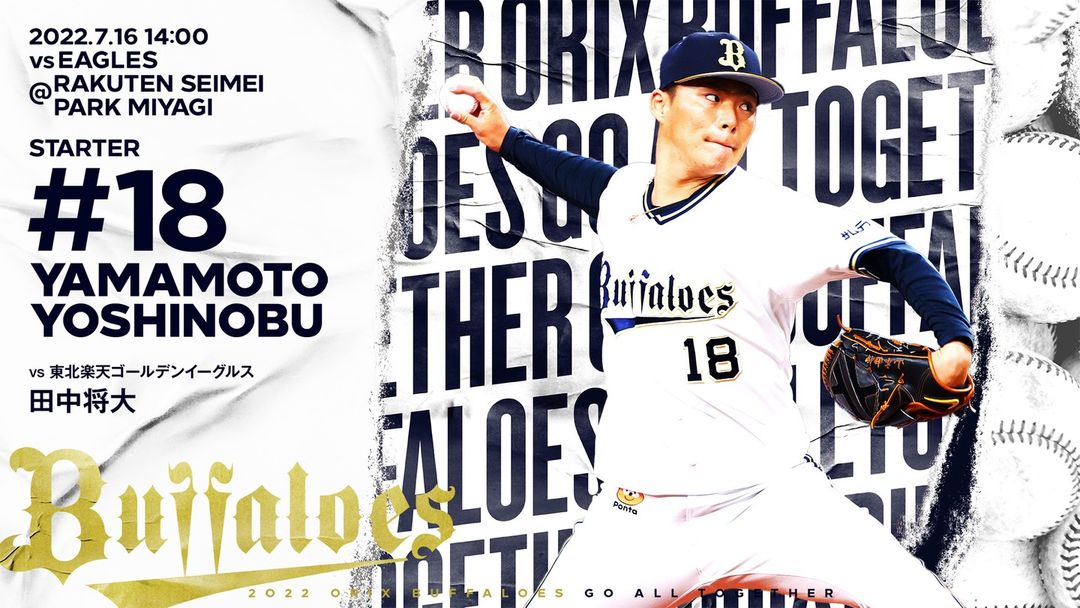 #7月16日 #楽天戦 #予告先発投手 #山本由伸 #楽天生命パーク #14時00分試合開始 #Bs2022 #buffaloes #baseball #ORIX #プロ野球 14時00分試合開始7月16日baseballBs2022buffaloesNPB Pacific LeagueOfficial MediaORIXORIX BuffaloesORIX Buffaloes Official Mediaオリックス・バファローズプロ野球予告先発投手山本由伸楽天戦楽天生命パーク NPBHUB.COM | The Fanbase of Nippon Baseball & Nippon Professional Baseball