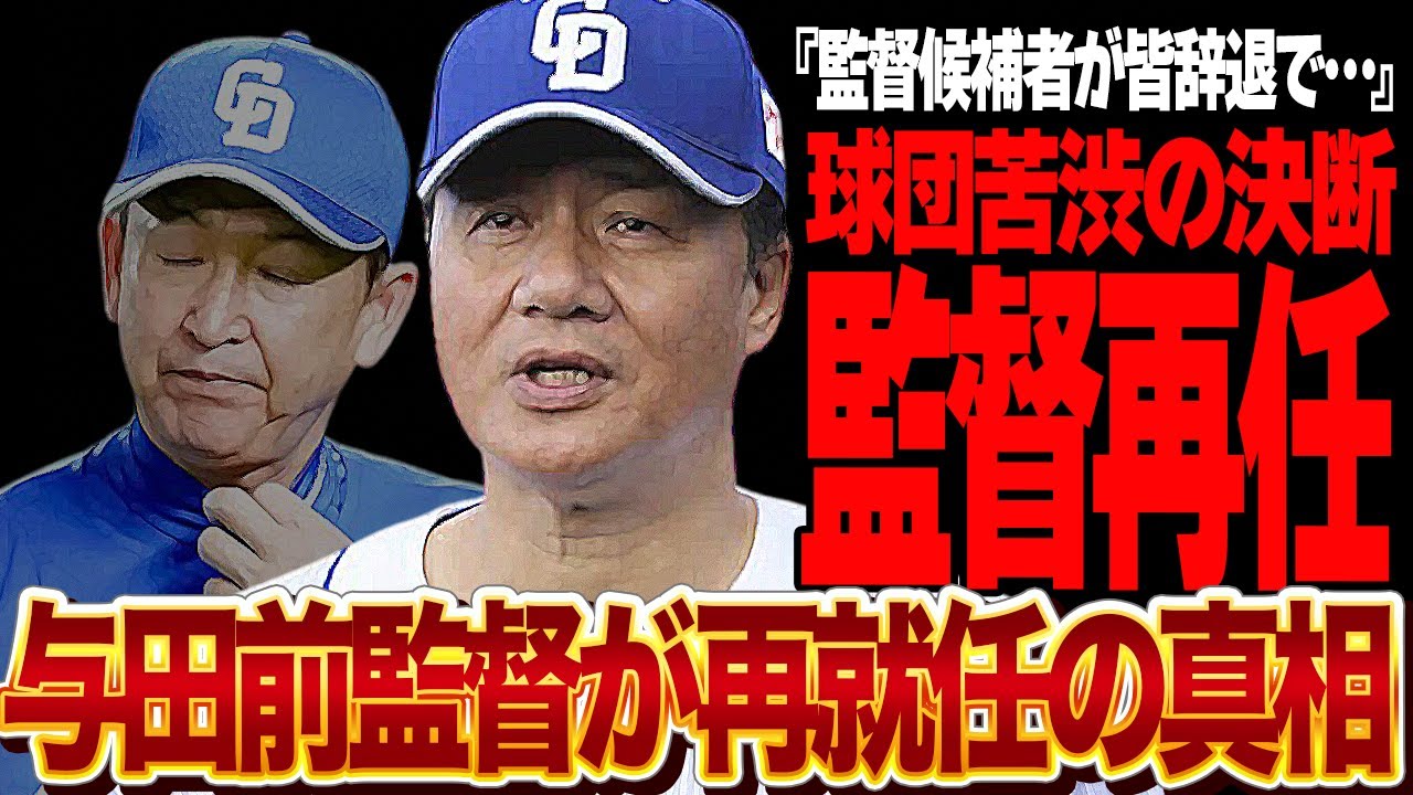 与田剛が中日ドラゴンズ監督に再就任する真相に驚きを隠せない!!中日前監督が立浪の辞任で土下座オファー、井端ら監督候補者が次々と辞退で監督ポスト難航…球団の苦渋の決断に絶句【プロ野球】