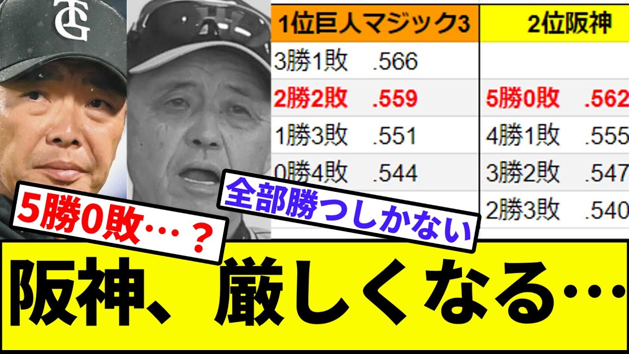 【浜虎同盟、破棄】阪神タイガース、巨人マジック3で優勝が厳しくなる…【なんJ反応】【プロ野球反応集】【2chスレ】【1分動画】【5chスレ】【横浜ベイスターズ】【広島カープ】【ヤクルト】【中日】