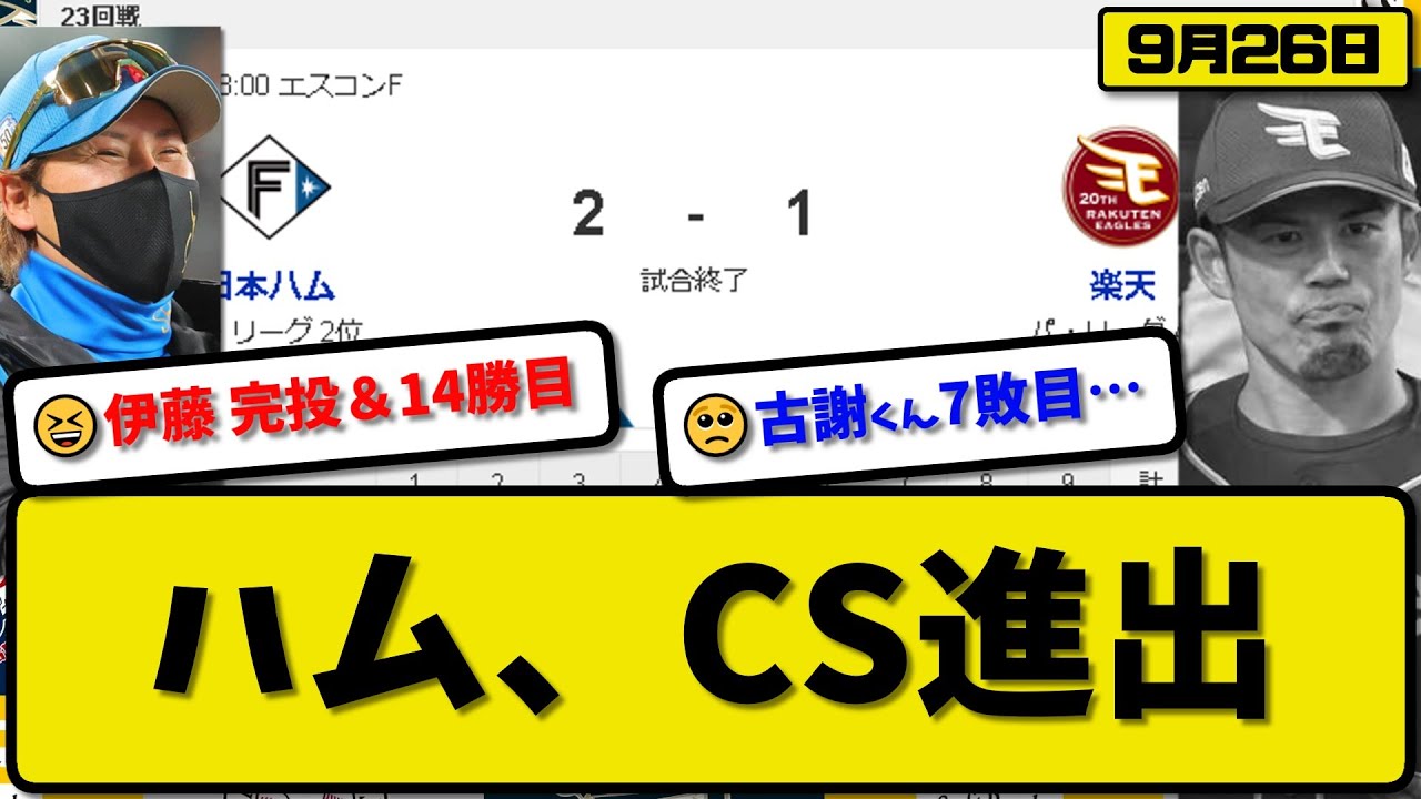 【2位vs4位】日本ハムファイターズが楽天イーグルスに2-1で勝利…9月26日逆転勝ちでCS進出決定…先発伊藤9回1失点14勝目…レイエス&清宮が活躍【最新・反応集・なんJ・2ch】プロ野球