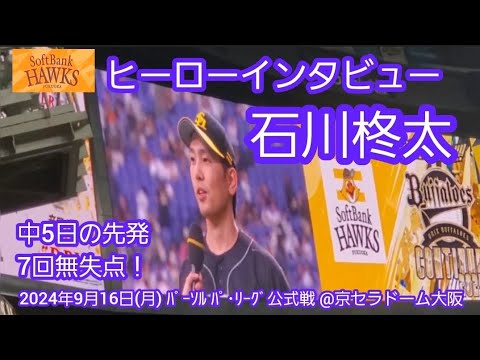 20240916【現地】石川柊太のヒーローインタビュー【中5日の先発も7回無失点!頼もしい6勝目】@京セラドーム大阪・レフト外野下段