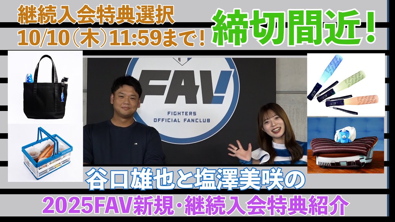 2024年ファイターズオフィシャルファンクラブ『FAV』の新規・継続入会特典を球団職員・谷口雄也とファイターズガール塩澤美咲がご紹介します!