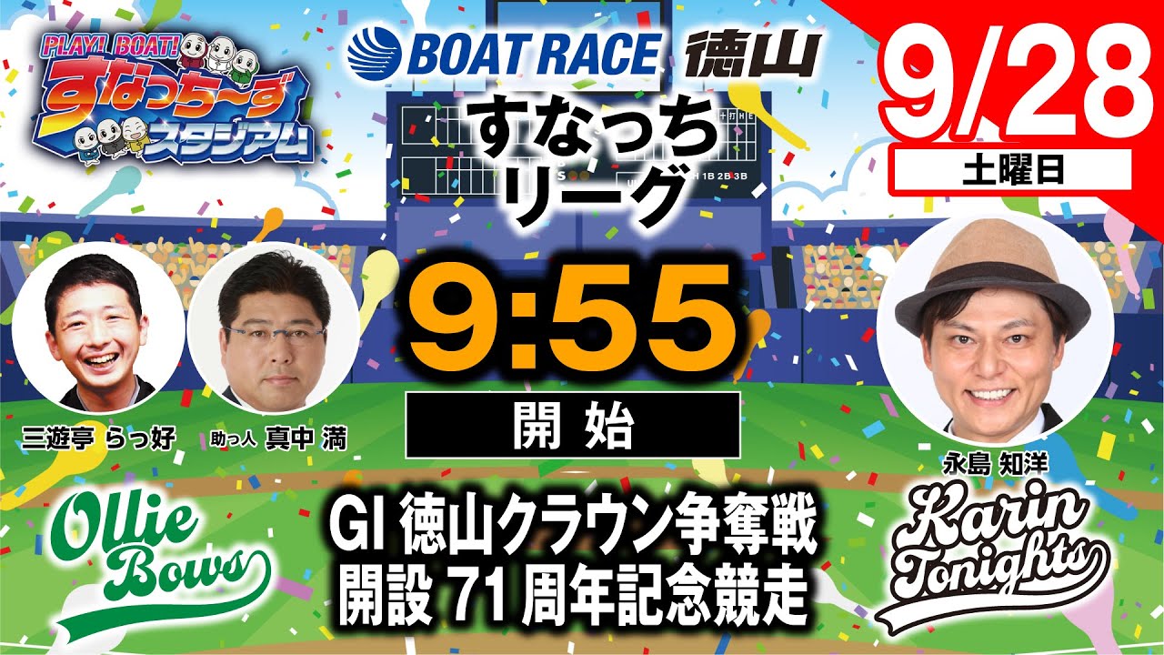 「PLAY! BOAT! すなっち〜ずスタジアム」9/28 GⅠ徳山クラウン争奪戦 開設71周年記念競走 準優勝戦日(すなっちリーグ前期)