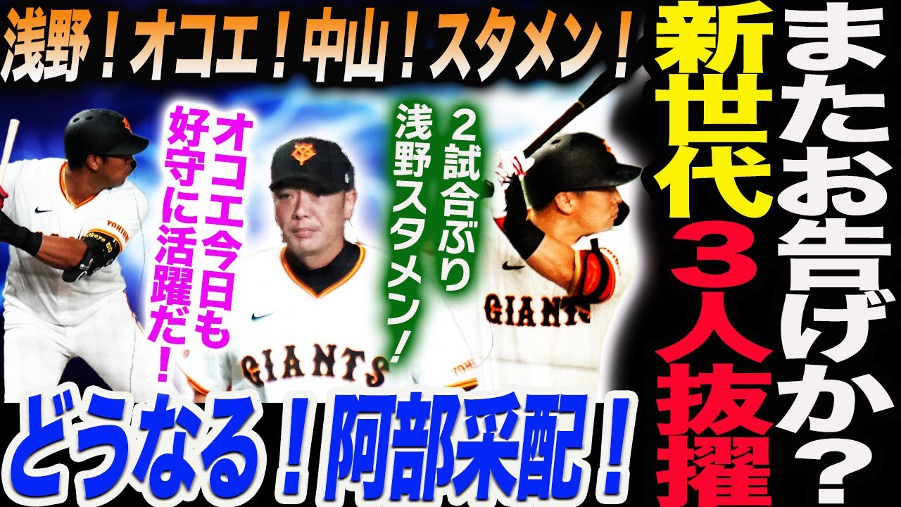 浅野!オコエ!中山!スタメン!またお告げか?新世代3人抜擢!どうなる!阿部采配!2試合ぶり浅野スタメン!オコエ今日も好守に活躍だ!読売巨人軍 ジャイアンツ 巨人 GIANTS阿部監督