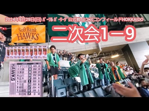 20240929 エスコンビジター最終戦を勝ったぞ!福岡ソフトバンクホークス、試合後の二次会1-9応援歌メドレー 鳴り物・声出し応援1-9@エスコンフィールドHOKKAIDO・内野3塁側