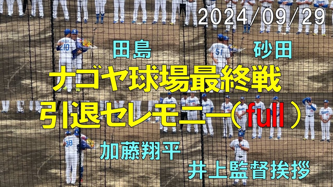 中日ドラゴンズ 田島慎二 砂田毅樹 加藤翔平 引退セレモニー(full)井上監督挨拶(2024/09/29 ナゴヤ球場)