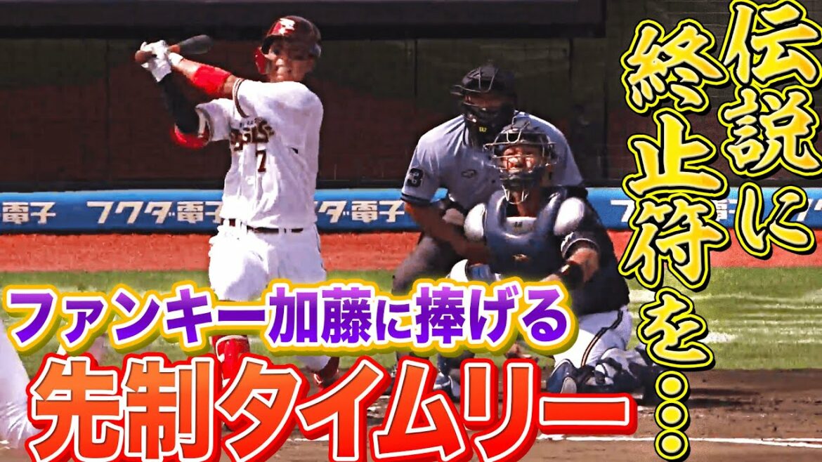 試合後にファンキー加藤さんのライブが予定されている今日の試合、『ファンキー加藤さんが来場する試合は勝てない』との噂もあるが… 東北楽天・鈴木大地が見事なバッティングで初回に先制!”伝説”に終止符となるか、先制タイムリーをお届け。