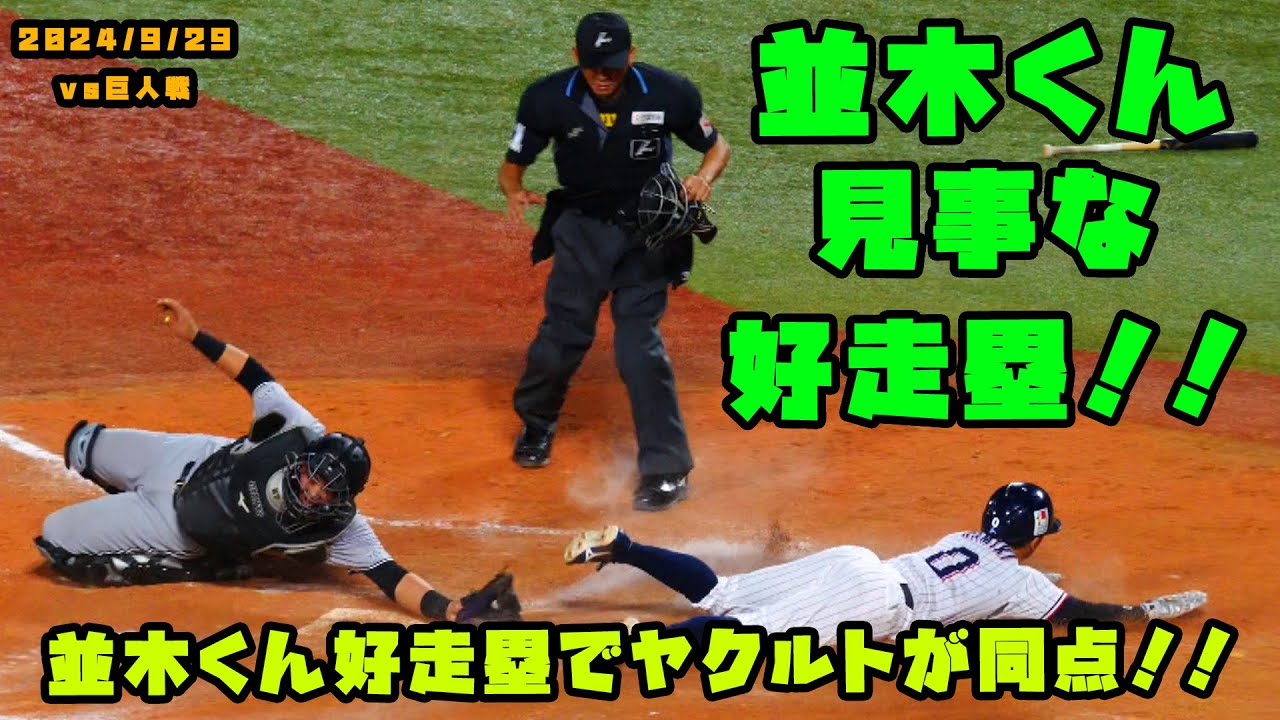 並木くんの好走塁でヤクルトが土壇場で同点に追いつく!! 2024/9/29 vs巨人