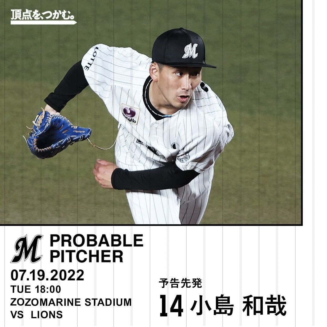 07.19.2022 予告先発:#小島和哉 投手 #chibalotte Chiba Lotte MarinesChiba Lotte Marines Official MediachibalotteNPB Pacific LeagueOfficial Media千葉ロッテマリーンズ小島和哉 NPBHUB.COM | The Fanbase of Nippon Baseball & Nippon Professional Baseball