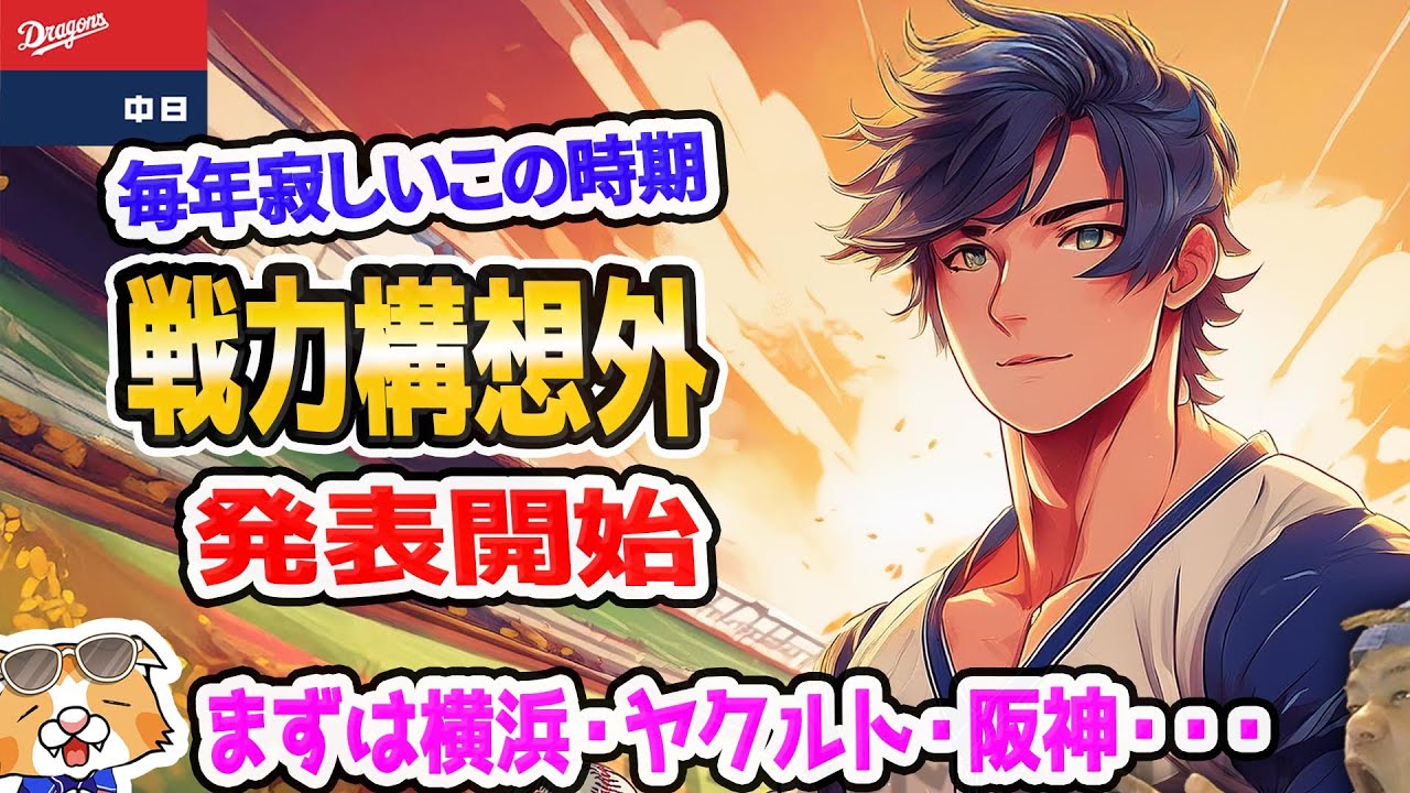 【中日ドラゴンズ】戦力構想外発表スタート・・・この時期は寂しい季節、まぁでも別れではないのだよ、ヤクルトとの争いも!【ライブ】