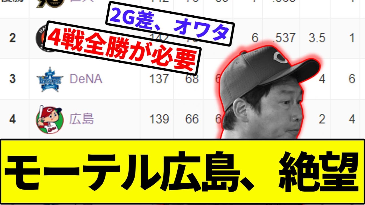 【カープ、9月頭1位からCS絶望へ】モーテル広島、絶望【なんJ反応】【プロ野球反応集】【2chスレ】【1分動画】【5chスレ】【広島カープ】【横浜優勝ベイスターズ】【吉野】【森原】【阪神】【巨人】