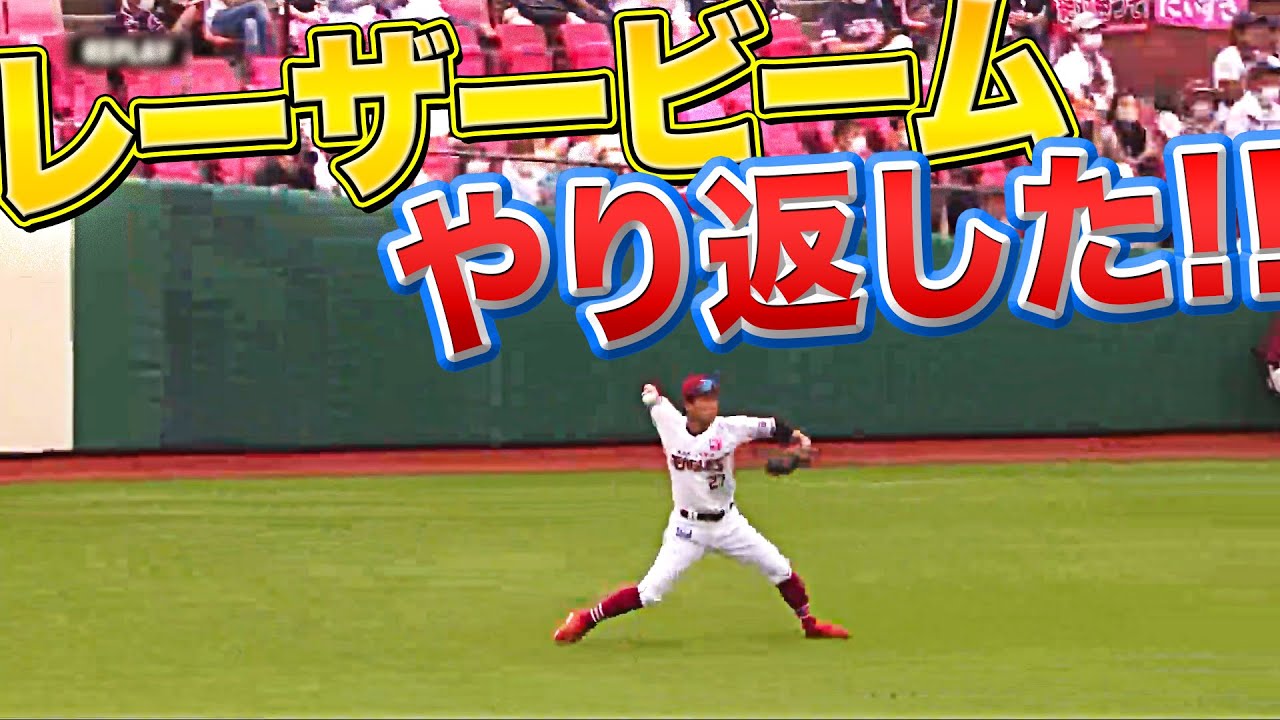 5回に好返球をされた東北楽天・岡島豪郎が強肩でやり返す!!