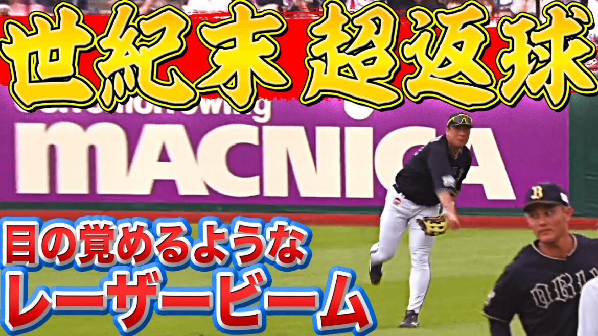 同点の5回、走者一、二塁のピンチでオリックス・杉本裕太郎が強肩発動!本塁へノーバウンドのドンピシャ送球で本塁アウトに。目の覚めるようなレーザービーム、”世紀末超返球”をご覧あれ。