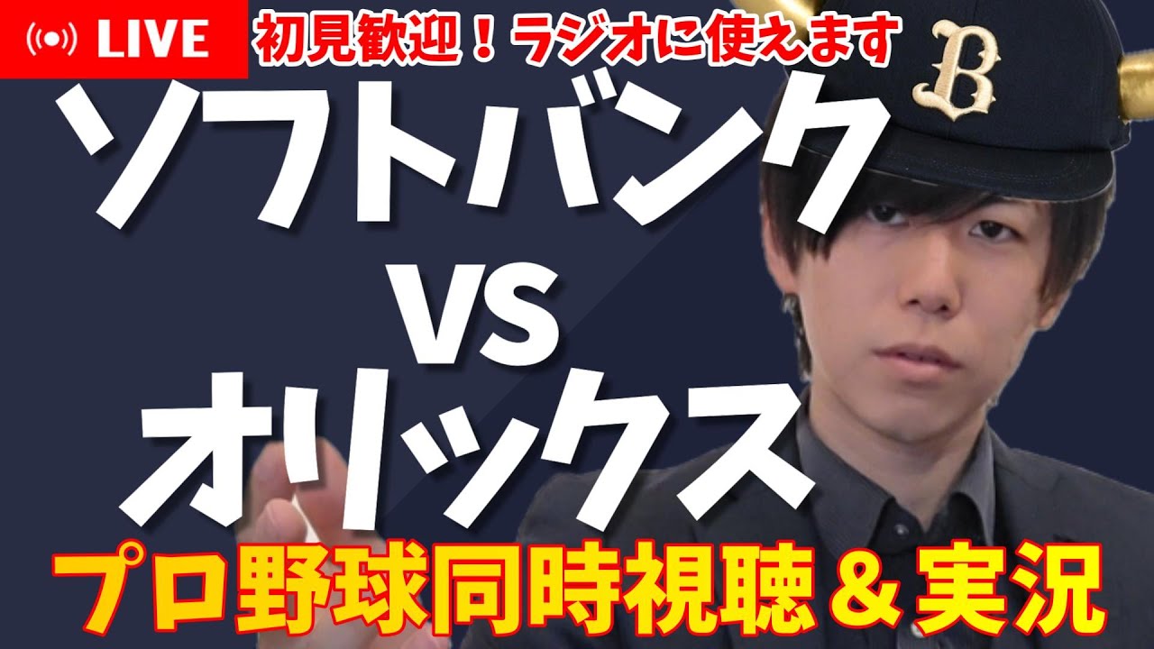 【プロ野球同時視聴】初見歓迎!ソフバン×オリックス【オリ応援】 西成区在住限界独身男性 人の嫌がるチャットは控えましょう☆ ──────── イカぽと申します Twitter→@ika_po ホームページ→ http://ikapo.blog.fc2.com お仕事・コラボ等の依頼はTwitterDMまで #イカぽ ORIX Buffaloesオリックスオリックス・バファローズソフトバンクバファローズラジオ同時視聴応援 NPBHUB.COM | The Fanbase of Nippon Baseball & Nippon Professional Baseball