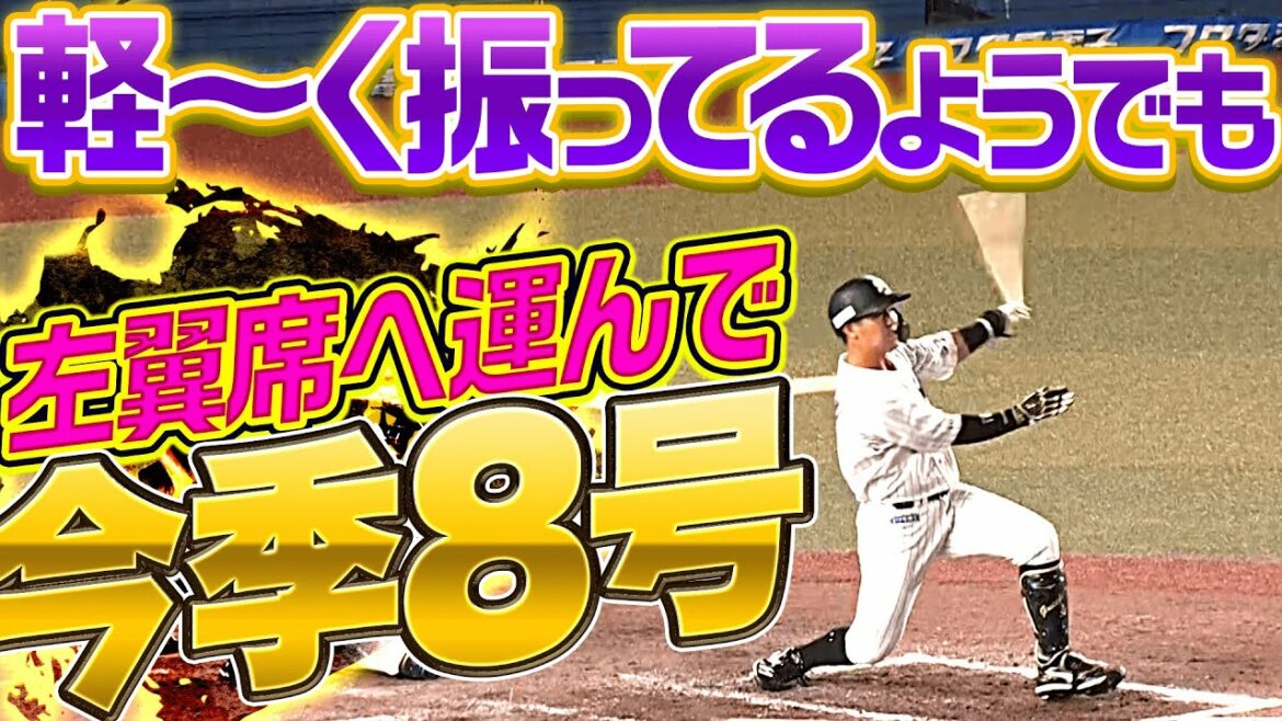 千葉ロッテ・山口航輝が軽く振ったようなスイングで打球をスタンドまで運ぶ!このダメ押しの8号2ランにきっとみなさん思ったはず、そのスイングでスタンドまで運ぶのか…。