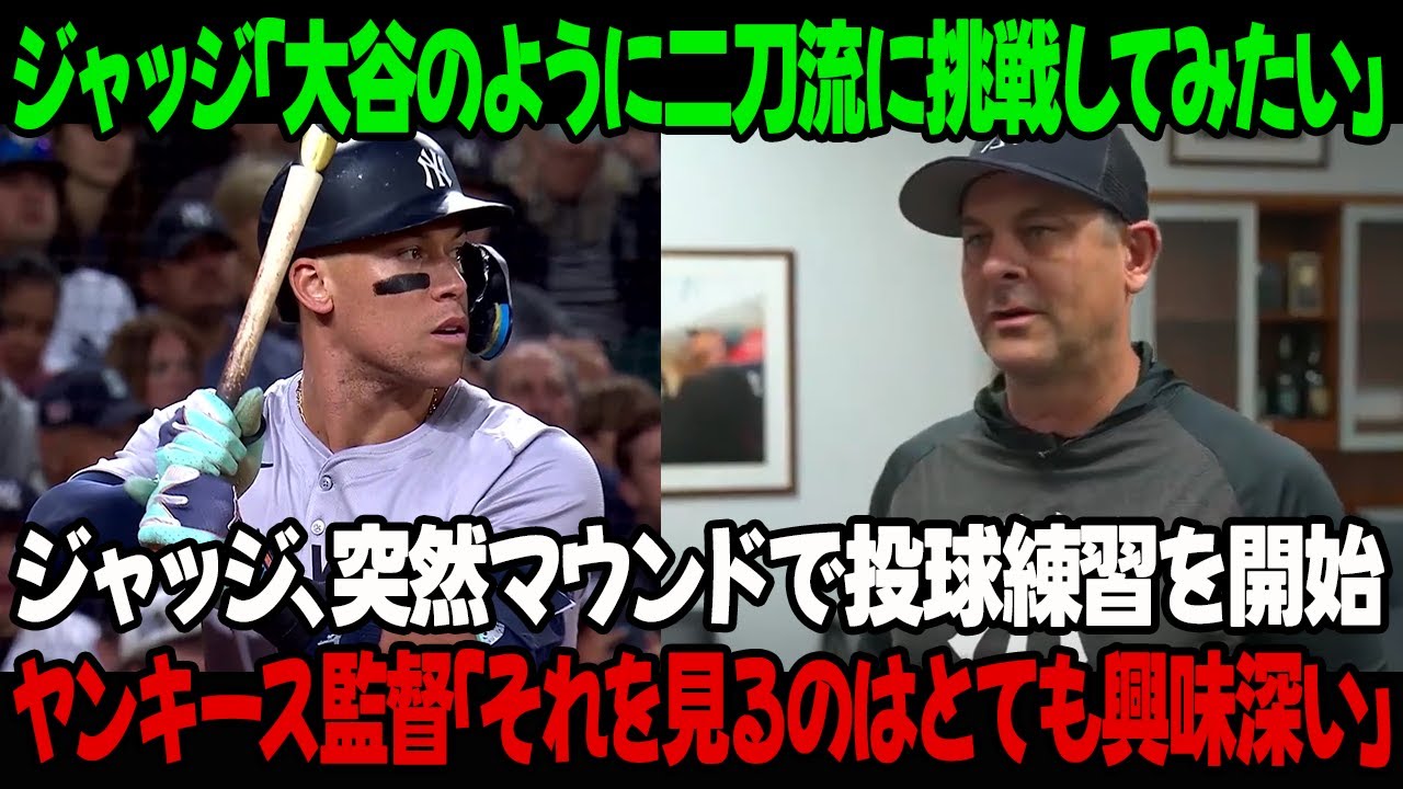 ジャッジ「大谷のように二刀流に挑戦してみたい」ジャッジが突然マウンドで投球練習を開始 ! ヤンキース監督「それを見るのはとても興味深い」