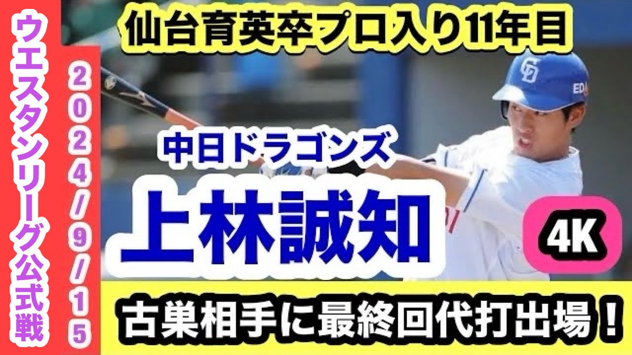 上林誠知(中日ドラゴンズ)仙台育英卒プロ入り11年目野手!古巣相手に最終回代打出場!