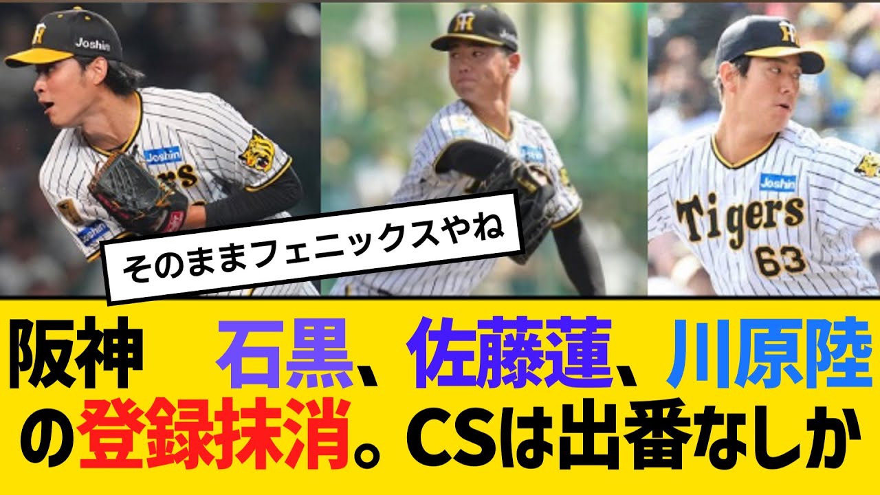 阪神 石黒、佐藤蓮、川原陸の登録抹消。CSは出番なしか 【ネットの反応】【反応集】