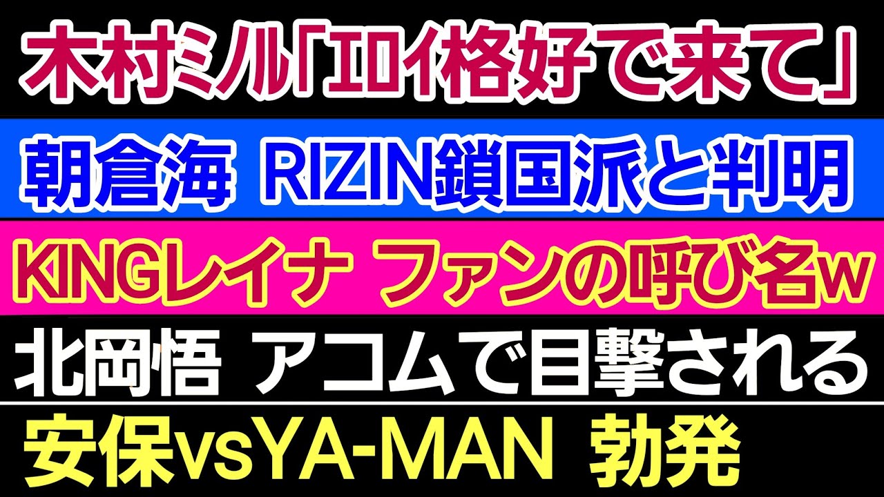 〇木村ミノル「エロい格好で来て」〇朝倉海 RIZIN 鎖国派だった〇安保ルキヤ 東京を引き上げた理由〇KINGレイナ ファンの呼び名w〇北岡悟 アコムで借金?〇UFC選手「ATTは今JTTになってる」