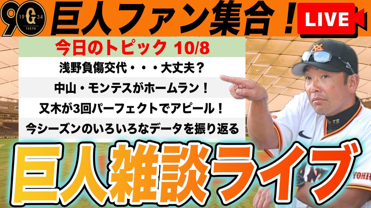 【巨人ファン集合】浅野腰痛再発?外野手故障者続出の緊急事態!中山・モンテスはホームランでアピールなど巨人雑談ライブ 読売ジャイアンツ
