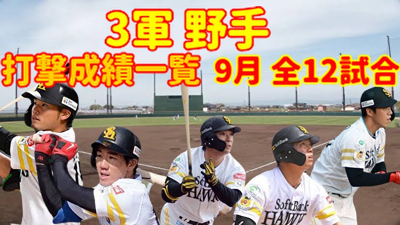 【3軍】 ラストスパートの9月!来季の契約を勝ち取る野手は誰だ?? どうも!小柳です! 3軍野手の9月の成績一覧です!! 来シーズンに望みを繋ぐ野手が1人でも 増えますように🙏 #sbhawks #ソフトバンクホークス #牧原巧汰 #育成選手 Fukuoka SoftBank Hawksホークス勝連大稀大泉周也山本恵大牧原巧汰福岡ソフトバンクホークス育成選手藤野恵音 NPBHUB.COM | The Fanbase of Nippon Baseball & Nippon Professional Baseball