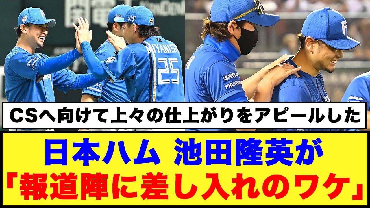 【アピール】日本ハム、池田隆英が「報道陣に差し入れのワケ」 ご視聴、チャンネル登録よろしくお願いします! 【アピール】日本ハム、池田隆英が「報道陣に差し入れのワケ」 #日本ハムファイターズ #新庄監督 #池田隆英 #レイエス #清宮幸太郎 #田宮裕涼 #郡司裕也 #松本剛 #万波中正 #プロ野球Chunichi Dragons中日ドラゴンズ新庄監督日本ハムファイターズ池田隆英郡司裕也 NPBHUB.COM | The Fanbase of Nippon Baseball & Nippon Professional Baseball