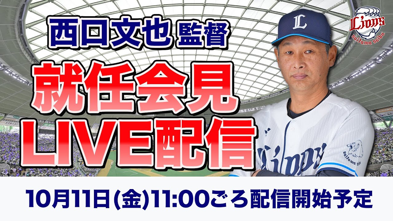 【いよいよ始動】西口文也監督就任会見LIVE配信 2025シーズンに向けて 新たにライオンズの指揮官に就任した #西口文也 監督。 10月11日(金)の11時ごろから行われる 監督就任会見の模様をライオンズ公式YouTubeでライブ配信いたします。 #埼玉西武ライオンズ #seibulions #プロ野球lionsOfficial ChannelOfficial VideoPACIFIC LEAGUEsaitamaSaitama Seibu LionsSaitama Seibu Lions Official ChannelSaitama Seibu Lions Official Videoseibu埼玉西武ライオンズ野球 NPBHUB.COM | The Fanbase of Nippon Baseball & Nippon Professional Baseball