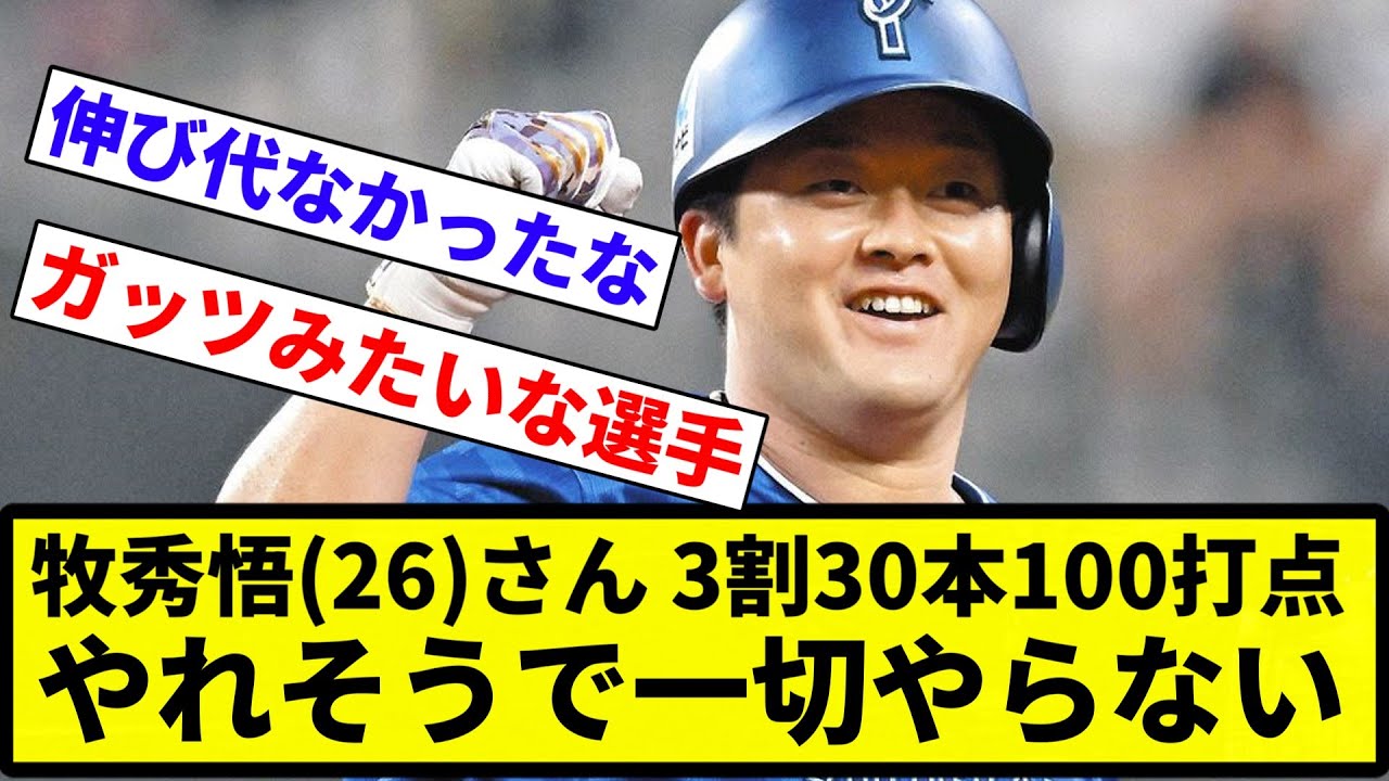 引用 牧秀悟(26)さん、3割30本100打点やれそうで一切やらない
