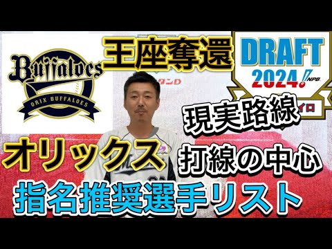 【指名推奨リスト】オリックスバファローズ「王座奪還目指して現実補強…」岸田監督に・・・【NPBドラフト会議2024】