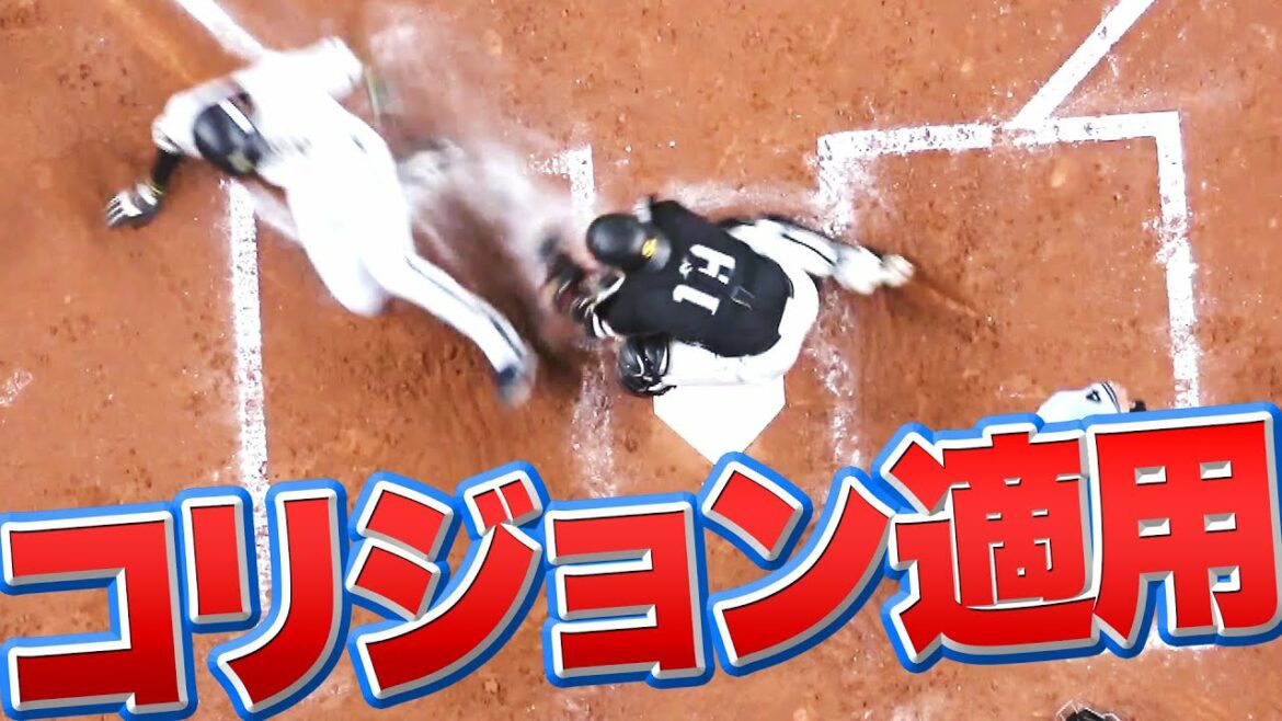 5回走者一、二塁の場面、ファーストへのゴロで三塁走者が本塁を目指すもタッチアウトに。しかしリプレイ検証でコリジョンルールが適用され、オリックスが1点を追加した。