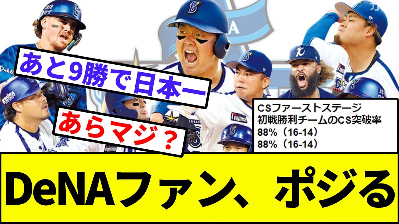 【100%じゃない理由…】横浜DeNAベイスターズファン、CS突破率にポジる【なんJ反応】【プロ野球反応集】【2chスレ】【1分動画】【5chスレ】【阪神タイガース】【日本ハム】【ロッテマリーンズ】