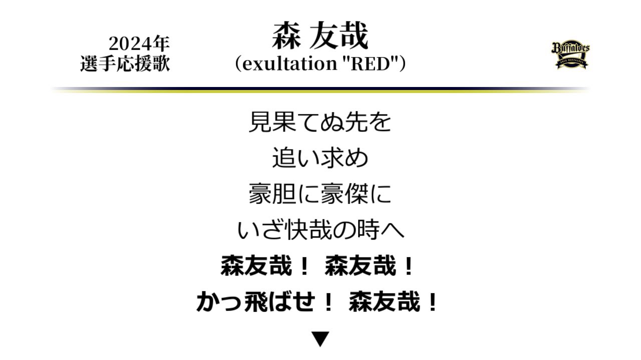 オリックス森友哉選手の応援歌エクサルテイションレッドです。