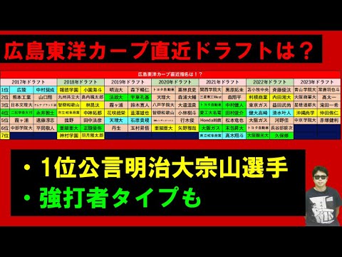 広島東洋カープ直近ドラフトは?2024年は既に明治大宗山塁選手を1位公言 【西尾典文さんと撮影中速報】広島東洋カープが明治大宗山塁選手を1位公言!昨年に続き12球団最速公言!https://youtu.be/_6autltL-LA 広島東洋カープ2024年ドラフト補強ポイント【西尾典文さん版】 広島東洋カープ2024年ドラフト補強ポイント【サラリーマンスカウト版】投手1位傾向だか今年は野手?https://youtu.be/FAvvx1Xb4xA 2024年ドラフトHiroshima Toyo Carpサラリーマンスカウト広島東洋カープ NPBHUB.COM | The Fanbase of Nippon Baseball & Nippon Professional Baseball