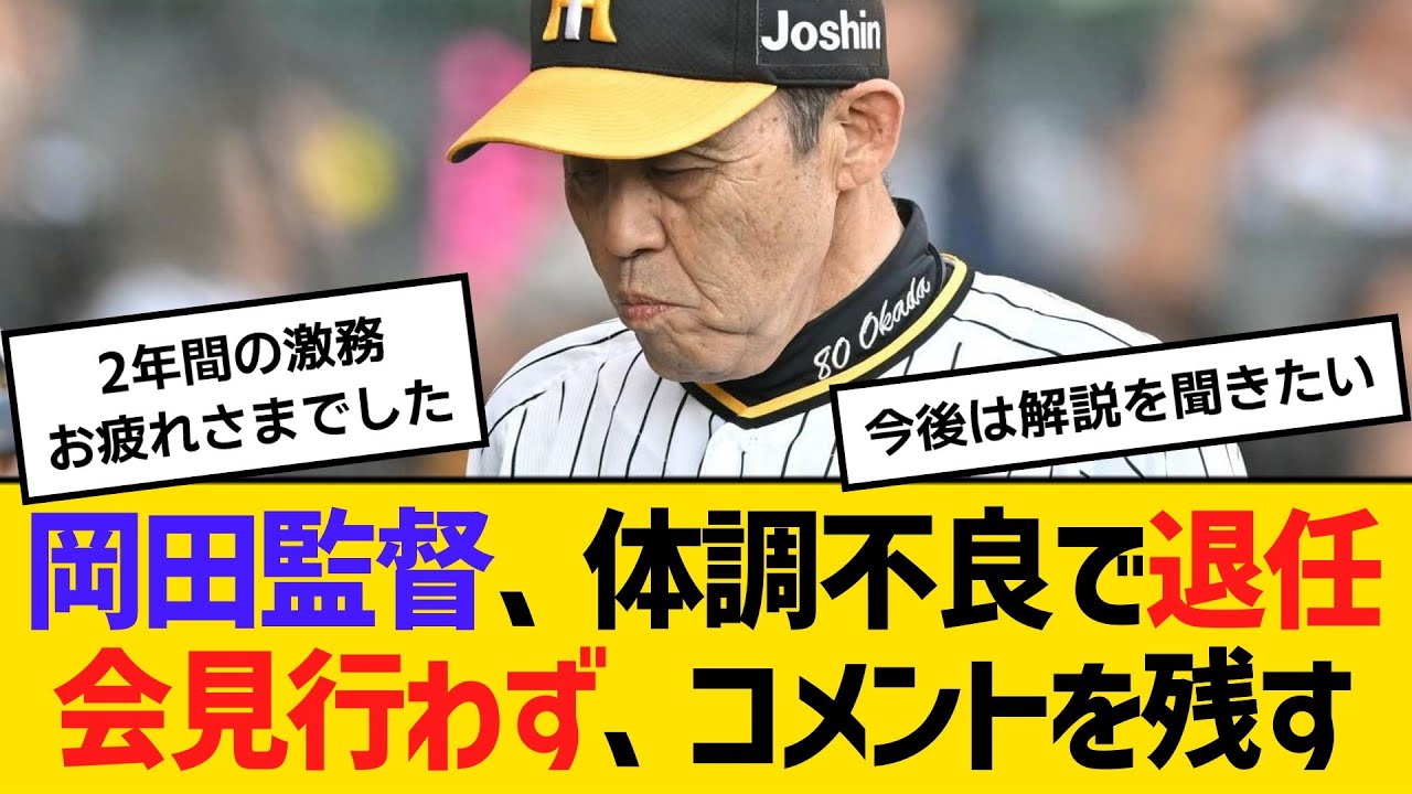阪神・岡田監督、体調不良で退任会見行わず、ファンにコメントを残す 【ネットの反応】【反応集】