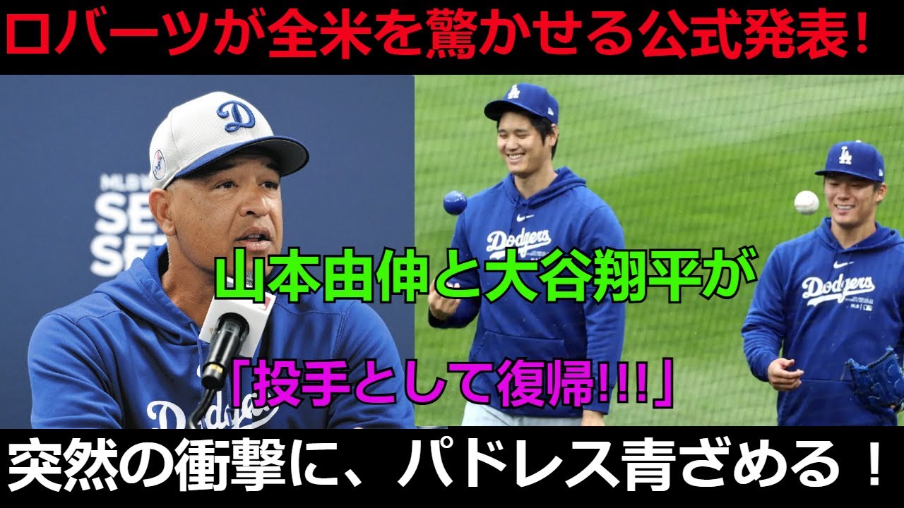 【速報】ロバーツが全米を驚かせる公式発表!山本由伸と大谷翔平が「投手として復帰!!!」突然の衝撃に、パドレス青ざめる !