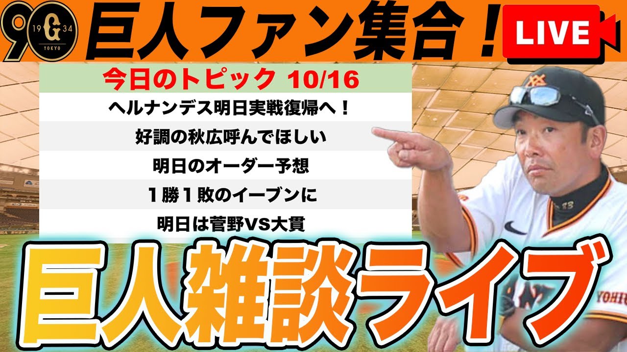 【巨人ファン集合】CSファイナル初戦は4安打完封負け!いろいろ愚痴りたいなど巨人雑談ライブ 読売ジャイアンツ