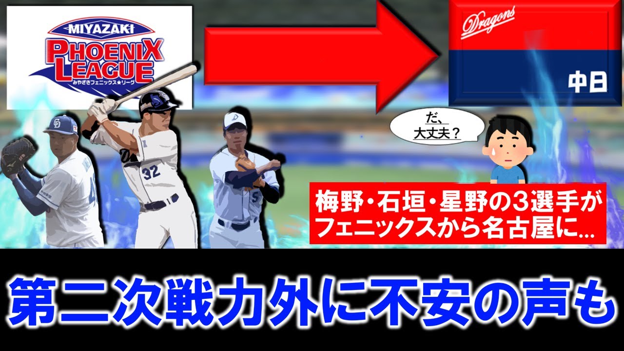 【こ、これは…】中日『梅野 雄吾』&『石垣 雅海』&『星野真生』がフェニックスリーグから名古屋に帰名…第二次戦力外を前に不安の声も…!?