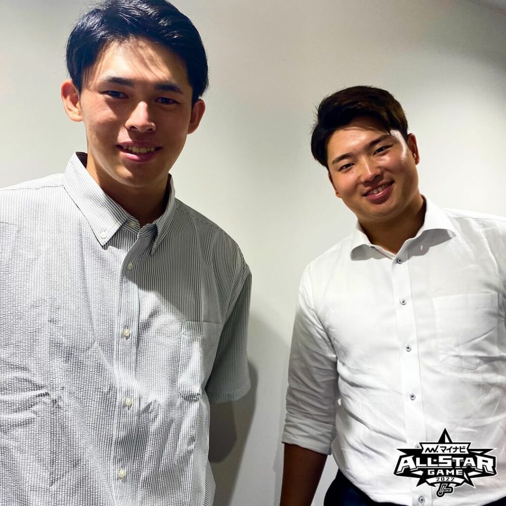 前日イベントを終えた東京ヤクルト #村上宗隆 選手と #佐々木朗希 投手。「緊張しましたが村上さんが色々と話を振ってくれてリラックスできました」と佐々木朗希投手。球宴の舞台での勝負が楽しみです。#chibalotte #広報 #マイナビオールスターゲーム2022 #swallows Chiba Lotte MarinesChiba Lotte Marines Official MediachibalotteNPB Pacific LeagueOfficial MediaSwallowsマイナビオールスターゲーム2022佐々木朗希千葉ロッテマリーンズ広報村上宗隆 NPBHUB.COM | The Fanbase of Nippon Baseball & Nippon Professional Baseball