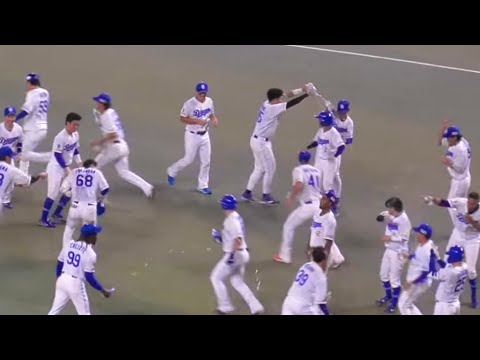 サヨナラ勝利の瞬間のドラゴンズベンチ 狂喜乱舞の選手たち!田島慎二がバンザイして喜び爆発 中日ドラゴンズVS横浜DeNAベイスターズ 2024/10/05