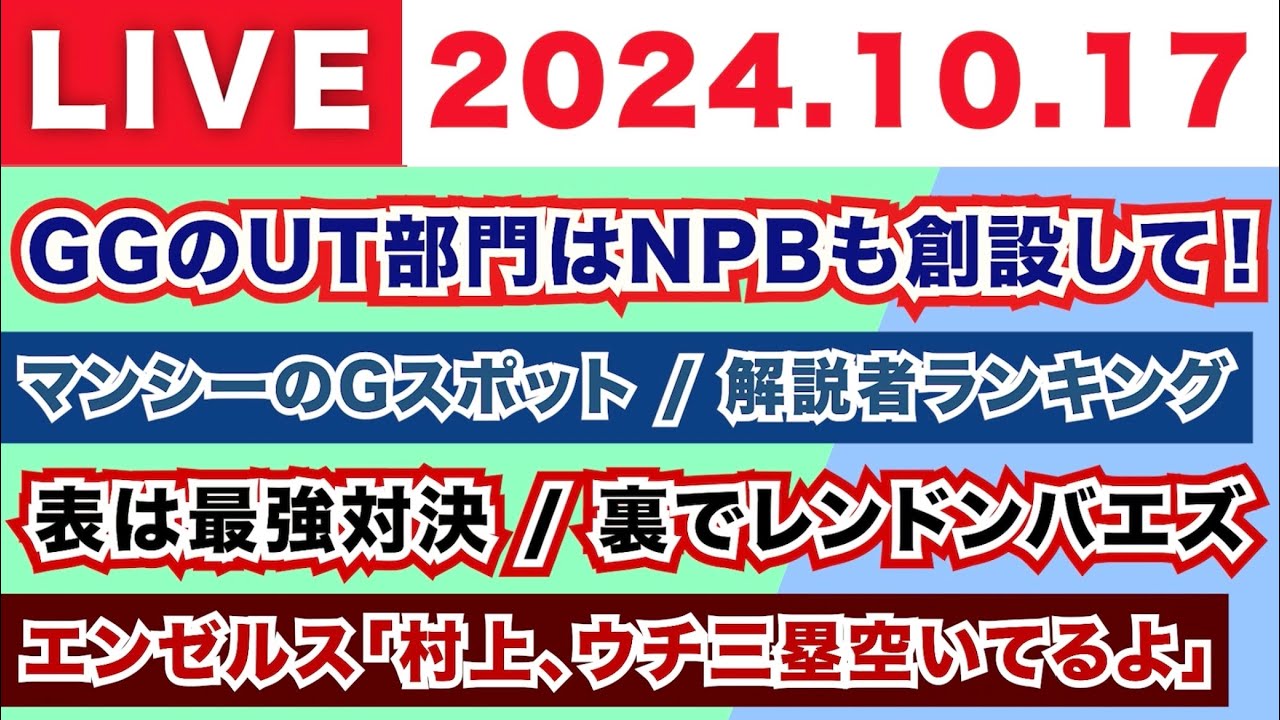 【2024.10.17】朝から生MLB!/GGのUT部門はNPBも創設して!/マンシーのGスポット&解説者ランキング/表は最強対決-裏でレンドンバエズ/エンセルス「村上、ウチ三塁空いてるよ」