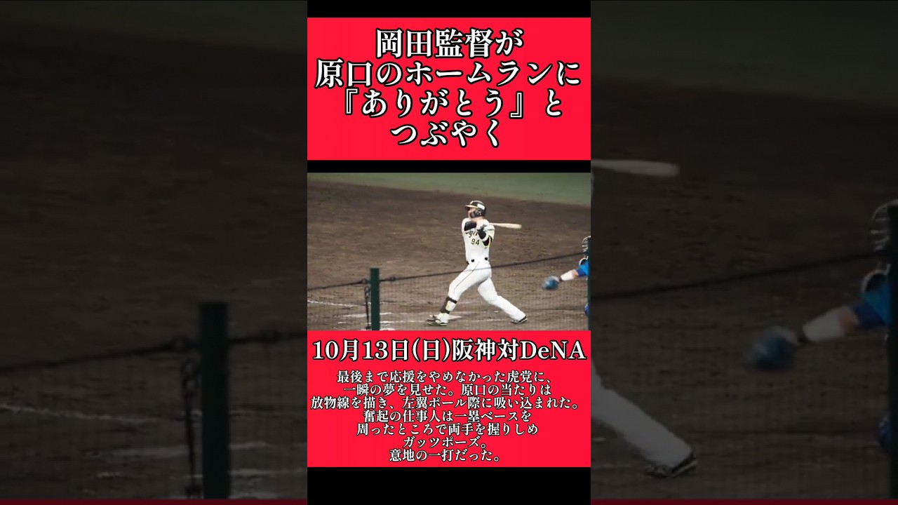 【阪神】岡田監督が最終回の原口のホームランで『ありがとう』とお礼! #阪神 #阪神タイガース #岡田彰布 #原口文仁 #shorts Hanshin Tigers原口文仁阪神タイガース NPBHUB.COM | The Fanbase of Nippon Baseball & Nippon Professional Baseball